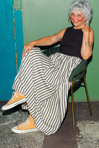 After returning from living in London and having her first set of twins (yep, thereโs two batches) she was motivated more than ever to work for herself, on her own terms. As a broad size 14 she always struggled to find things to wear, but when she did find the right piece, would feel a million bucks. After hunting high and low to find suitable clothing she thought, there should be a store that just specialises in relaxed, cool shapes and SS was born.