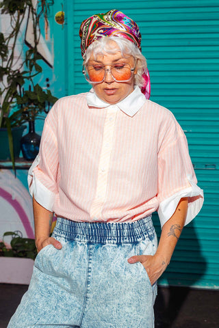 After returning from living in London and having her first set of twins (yep, thereโs two batches) she was motivated more than ever to work for herself, on her own terms. As a broad size 14 she always struggled to find things to wear, but when she did find the right piece, would feel a million bucks. After hunting high and low to find suitable clothing she thought, there should be a store that just specialises in relaxed, cool shapes and SS was born.