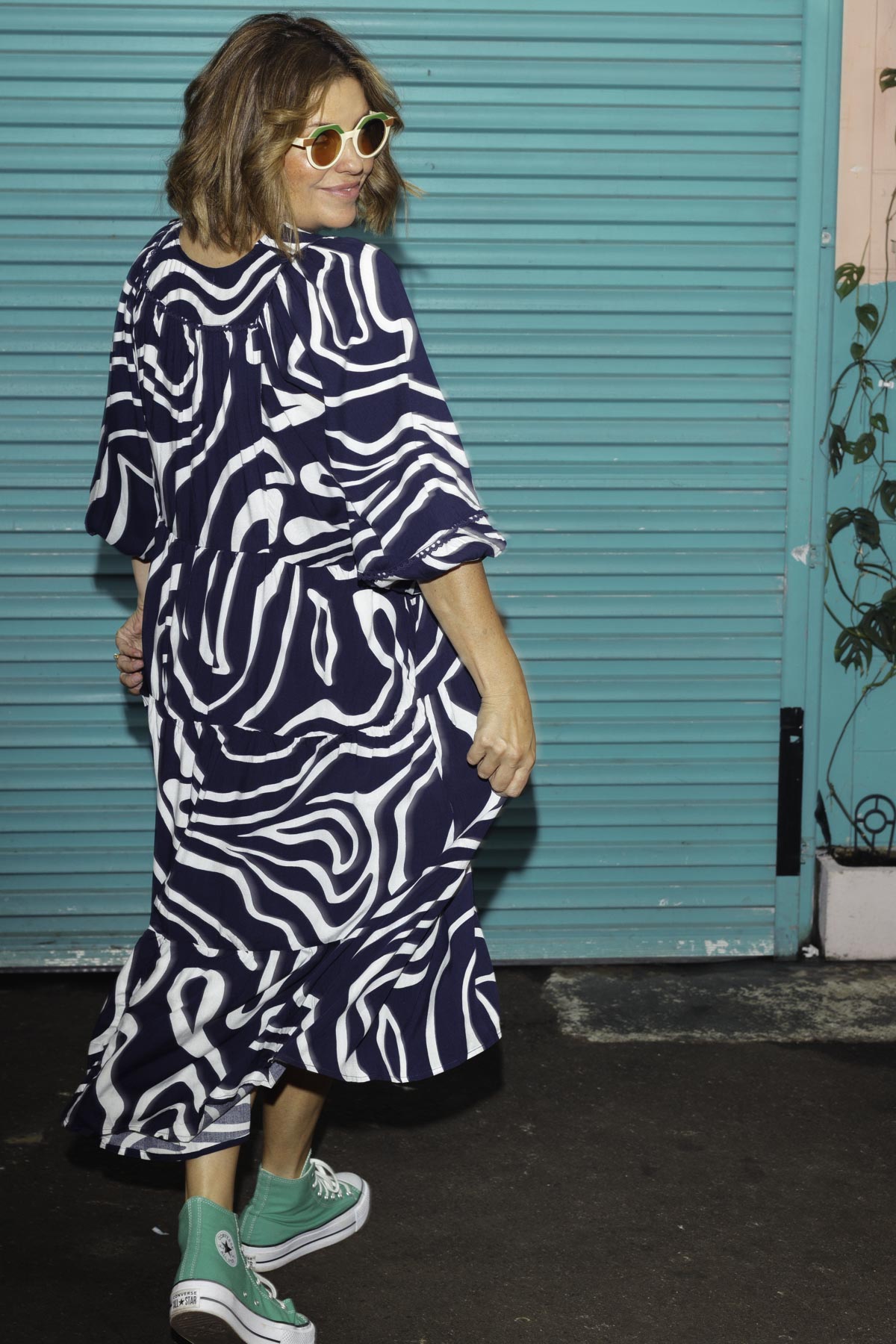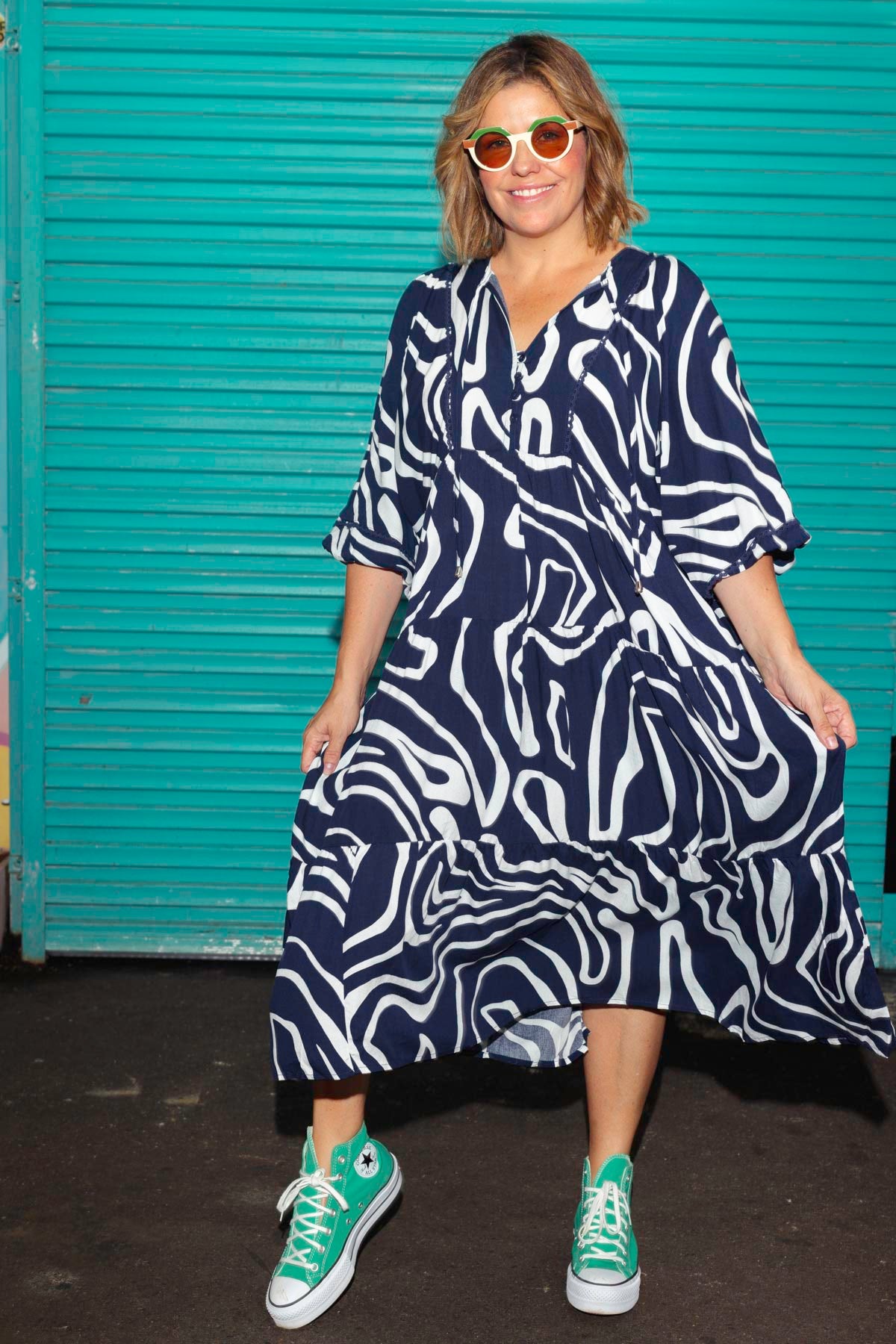 Fabric Composition Classic Boho Dress - Navy Wavy