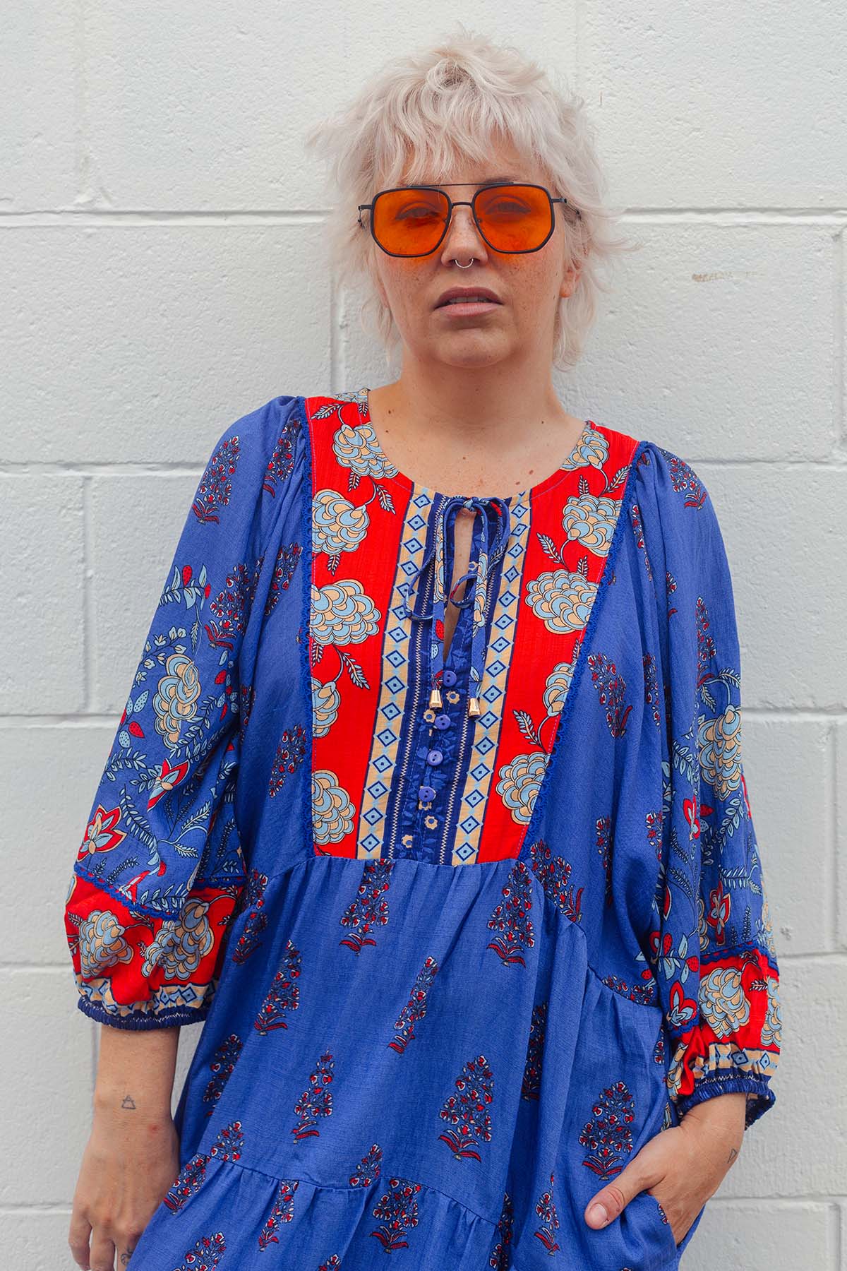 Fabric Composition Classic Boho Dress - Seraphina Blue
