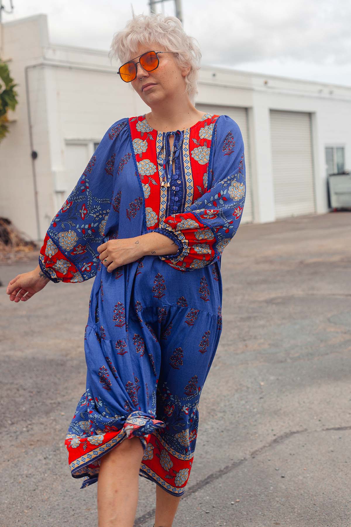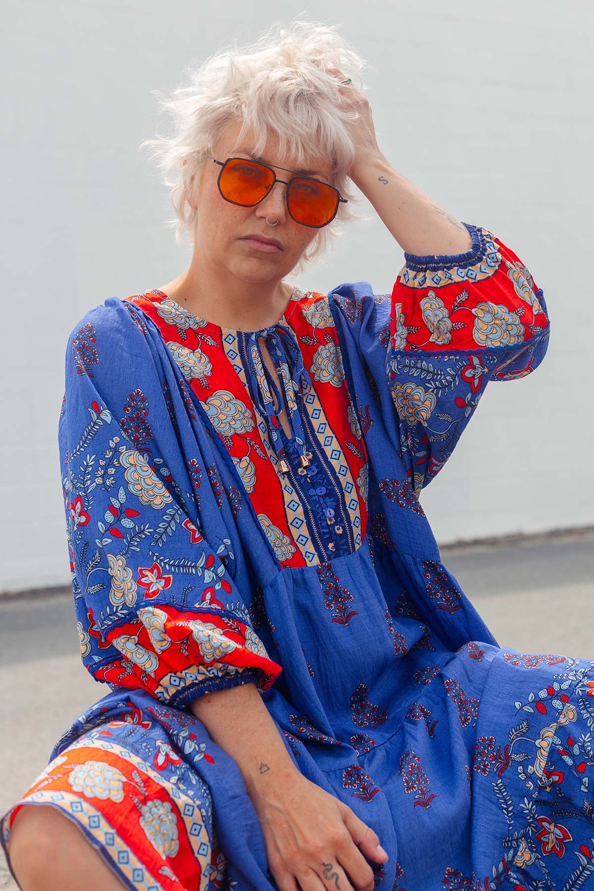 Another STUNNING Boho Dress to add to the mix in this amazing SERAPHINA BLUE print a multicoloured mix of florals and paisley inspired print. So obsessed!