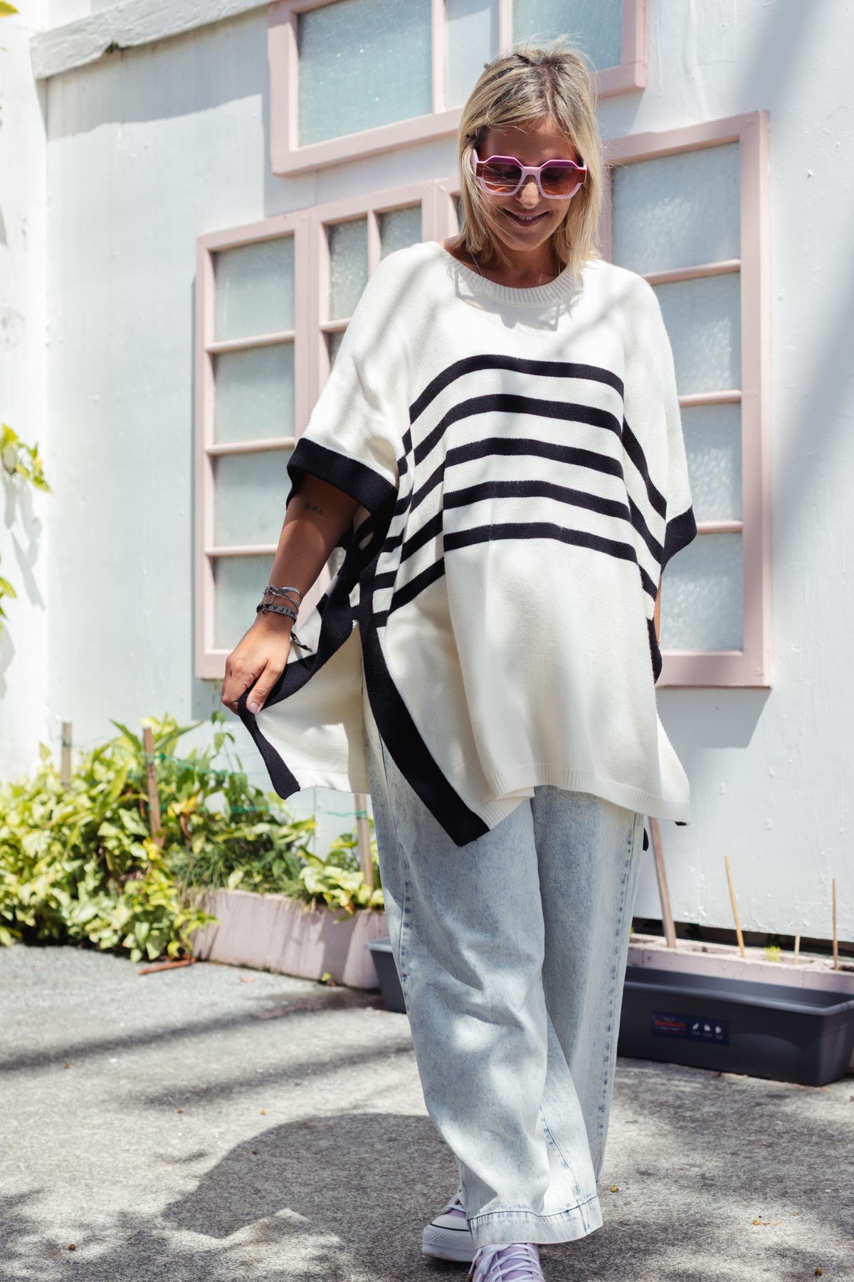 Time to start layering and this is SUCH a cool shape  say hello to our new ESSENTIAL PONCHO in BLACK & OFF WHITE a cool as anything oversized classic poncho shape that looks so good paired with any denim!