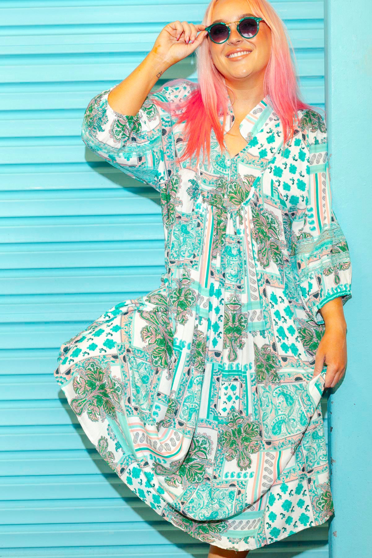Nothing quite like an oversized flowy dress, that doesn't cling and suits EVERY shape & size, gorgeous soft V neck with a chunky Mandarin colour and coming in an array of new prints! Check out this beautiful new SAVANNAH in MINT + FORREST.