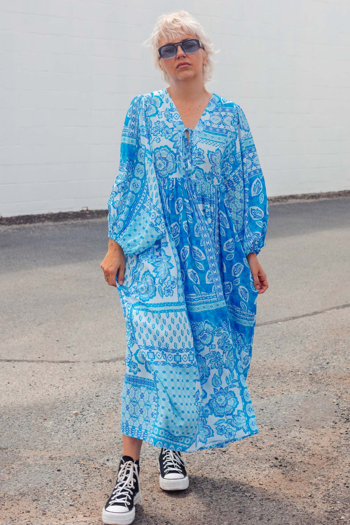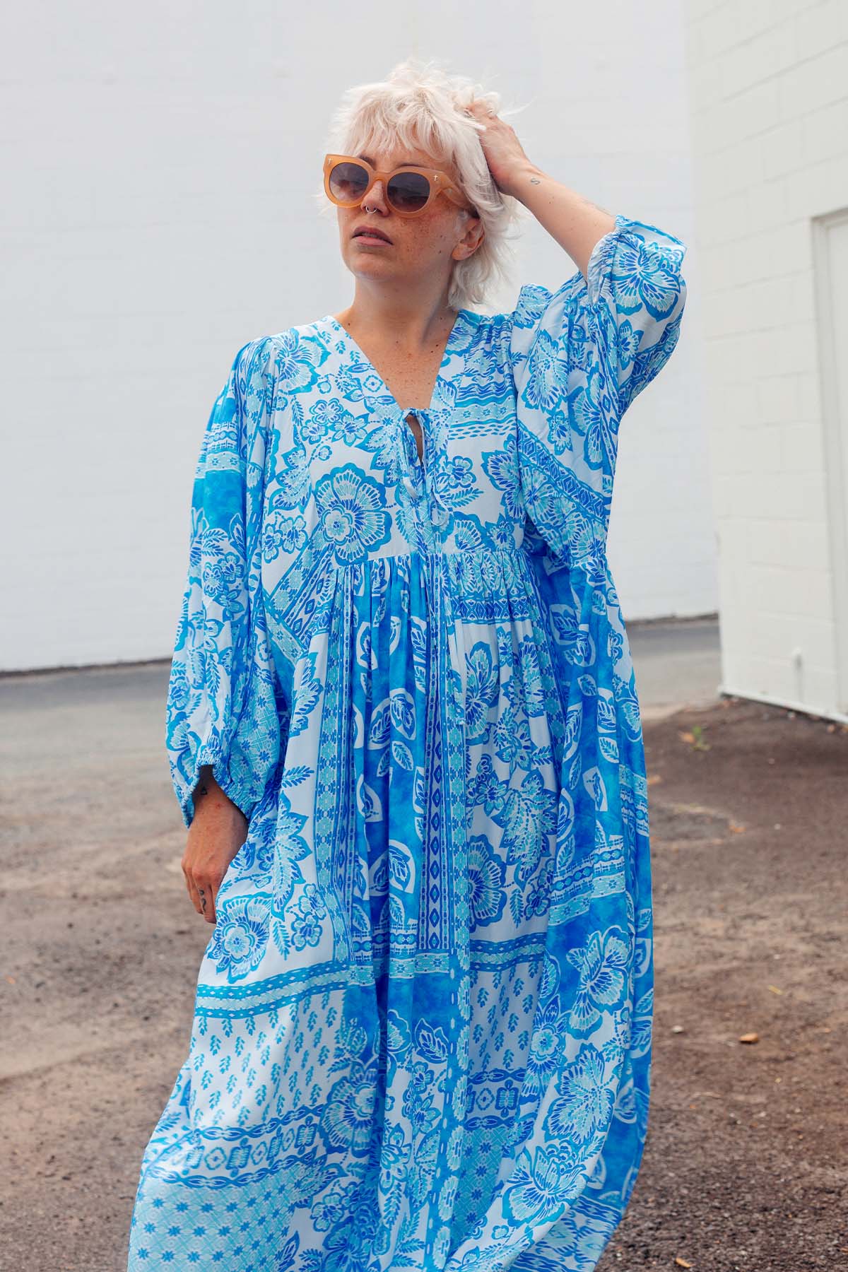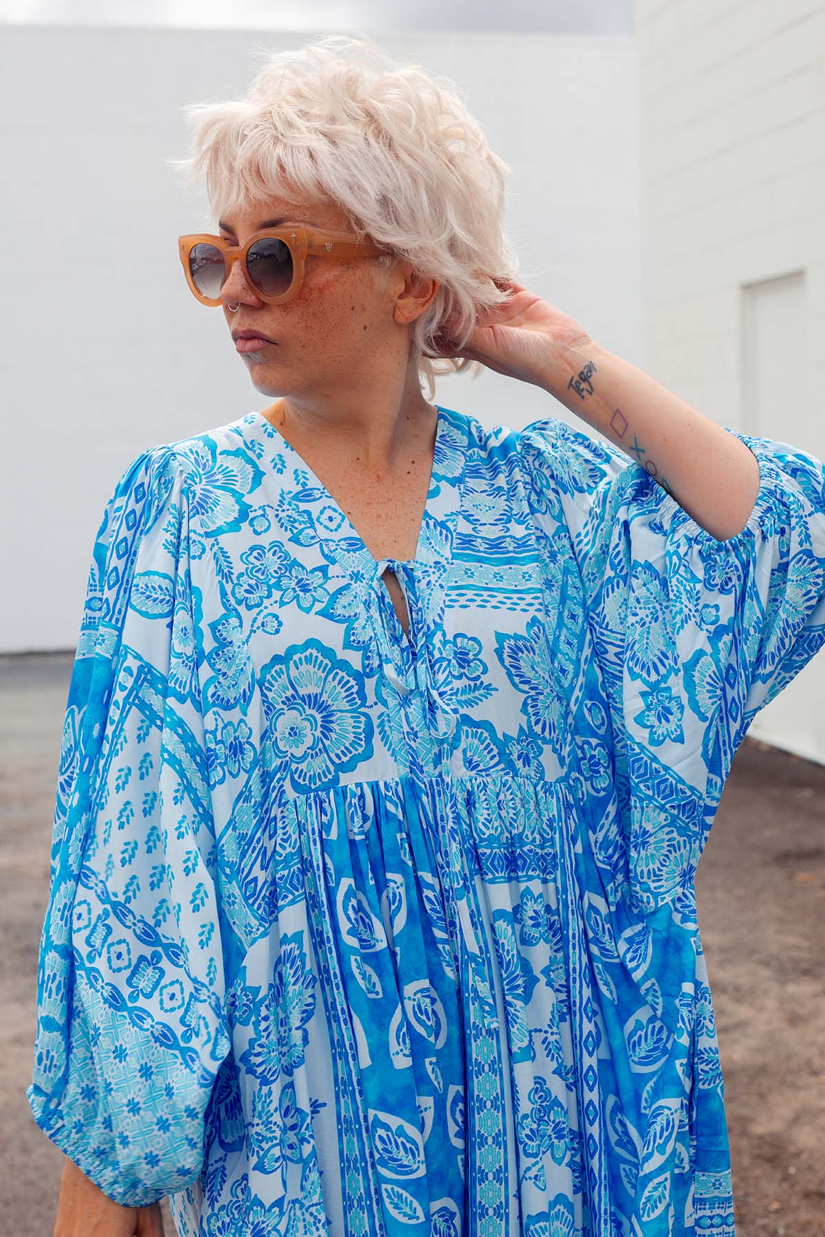 A brand NEW stunning style, an oversized, flowy kaftan style, say hello to the "LANI DRESS" that we have just released in a BLUE & PINK PAISLEY!