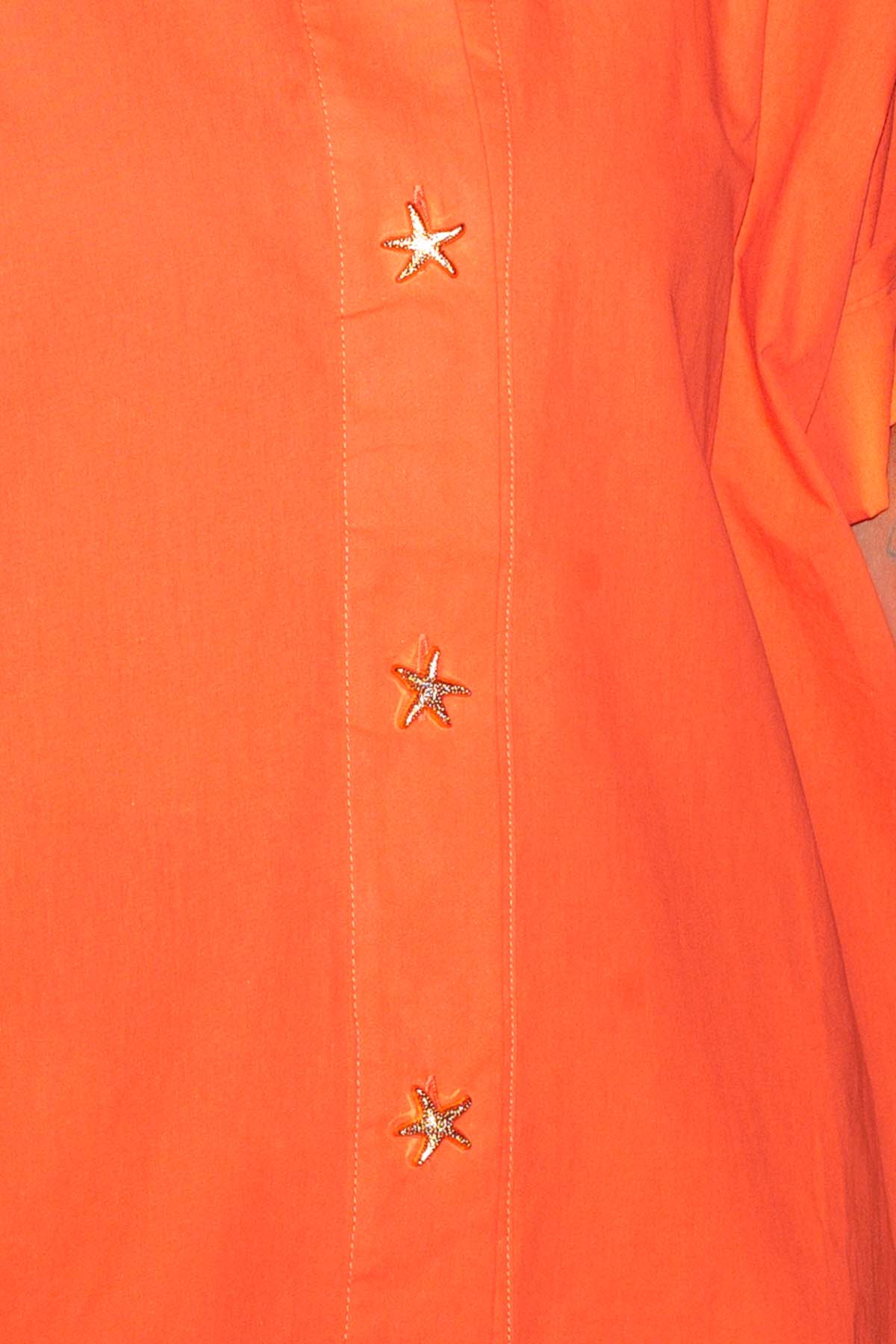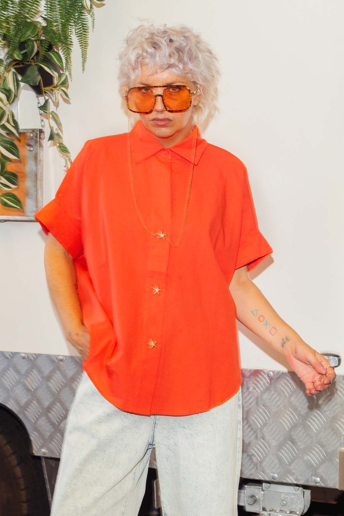Fabric Composition Shell Button Up Shirt - Tangerine