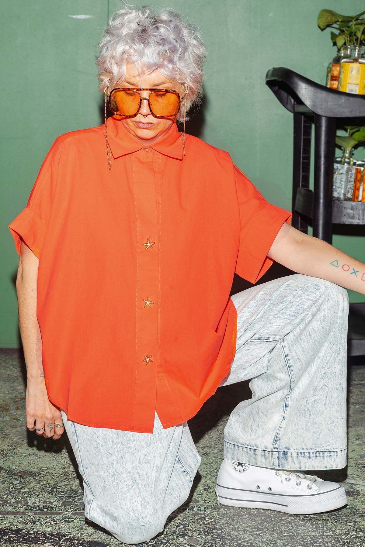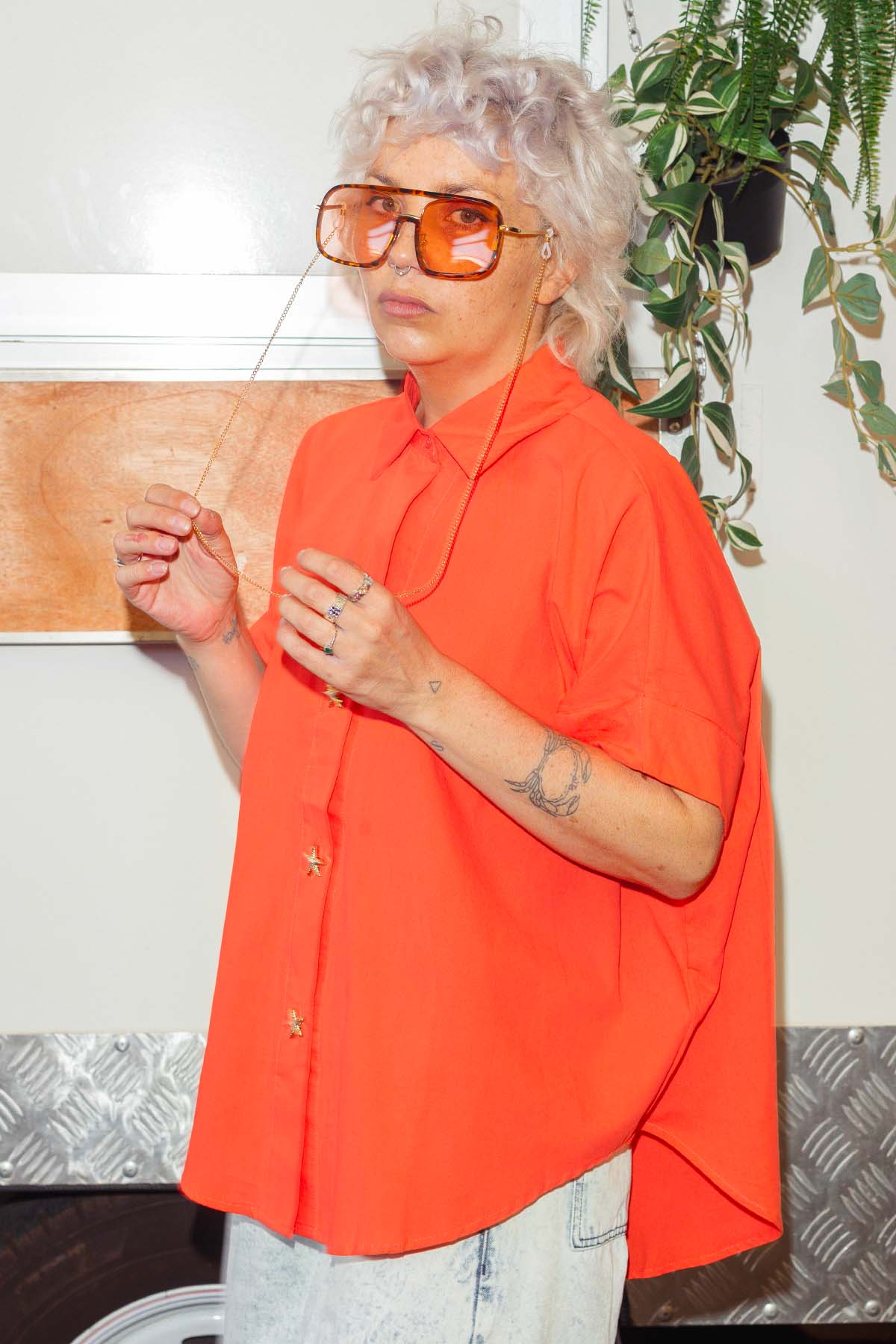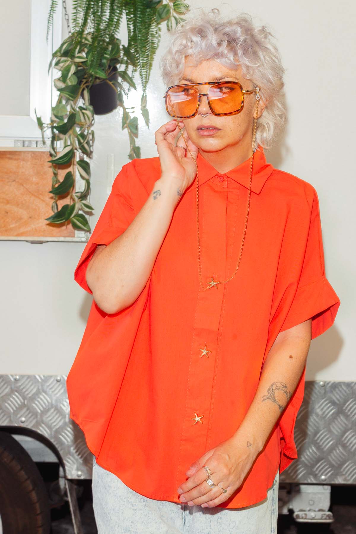Such a cute addition to your wardrobe, a great boxy button up with a little bit of flair, we are so excited to introduce to you the all new SHELL BUTTON UP that comes in both a fresh WHITE as well as gorgeous TANGERINE.