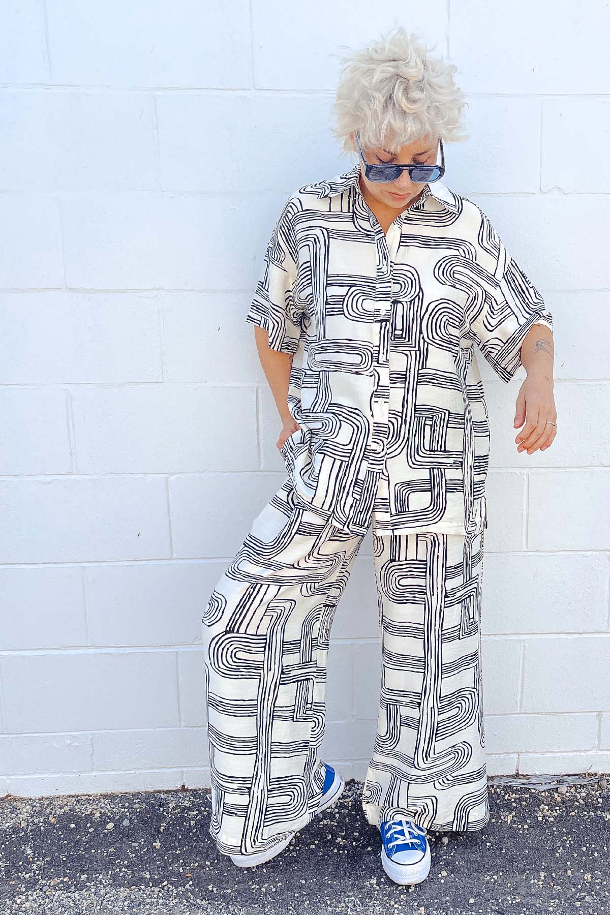 We are obsessed with a cool, button up shirt here at SS HQ, great shape & funky print that comes with matching lounge pants, so we absolutely couldn't go past this STUNNING new BRENNA SHIRT!