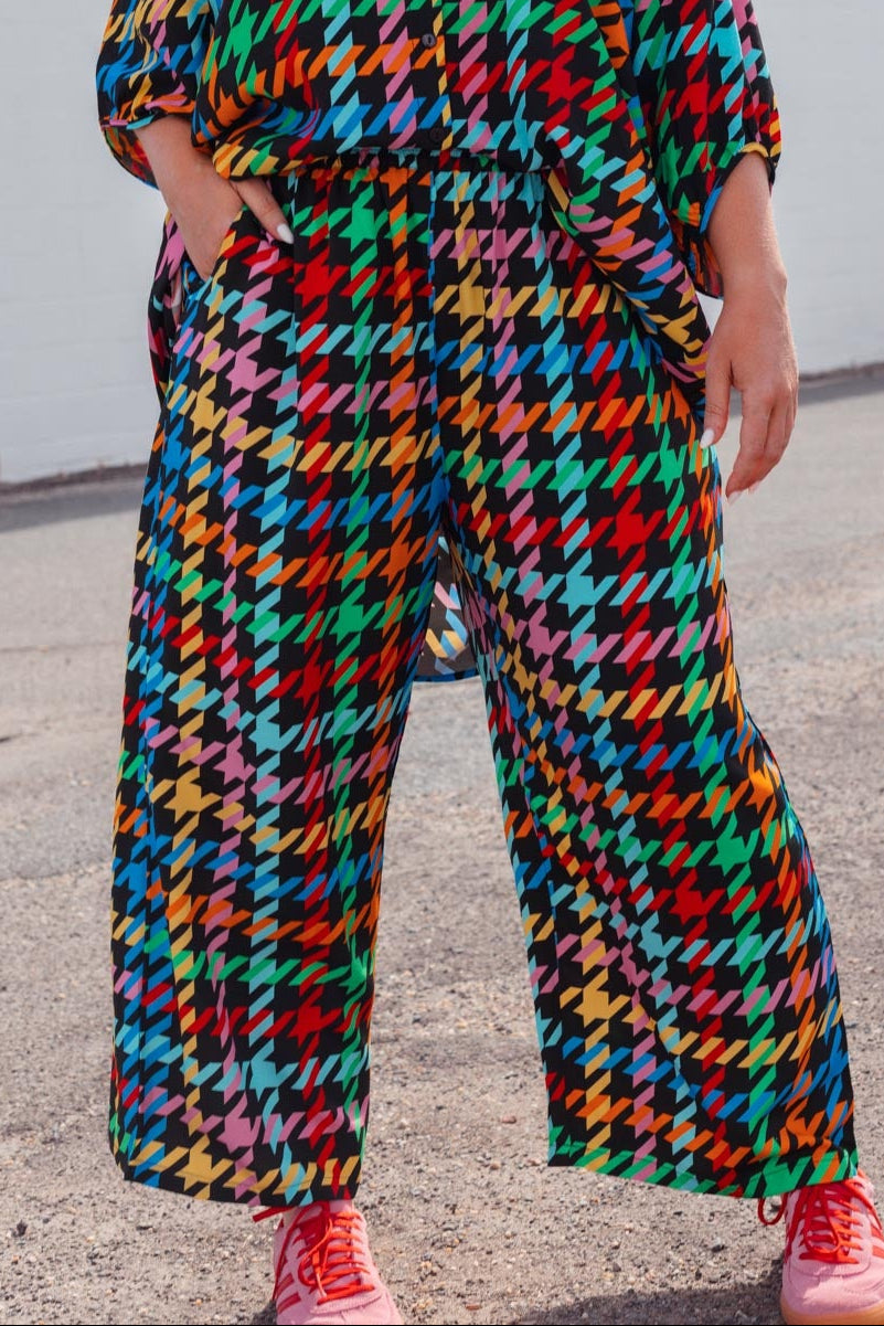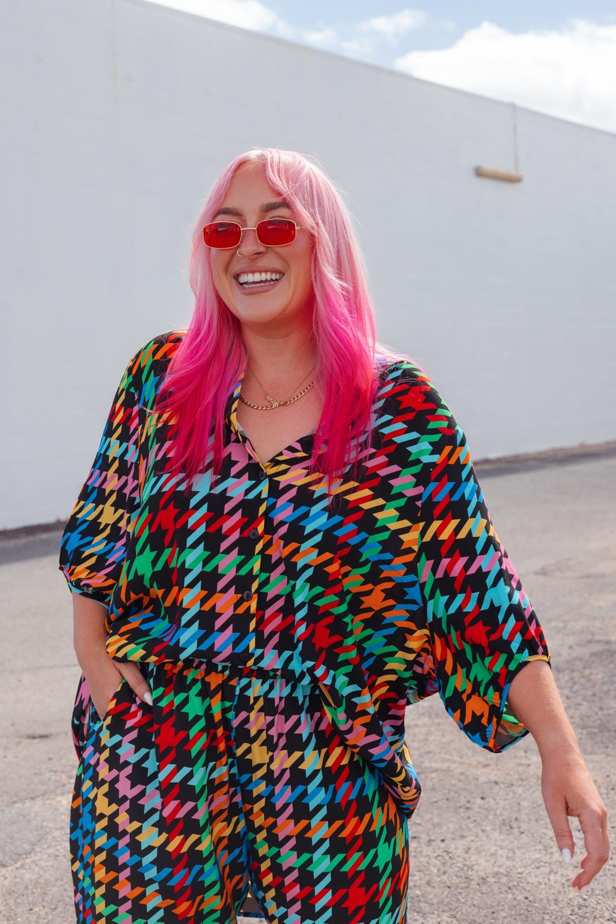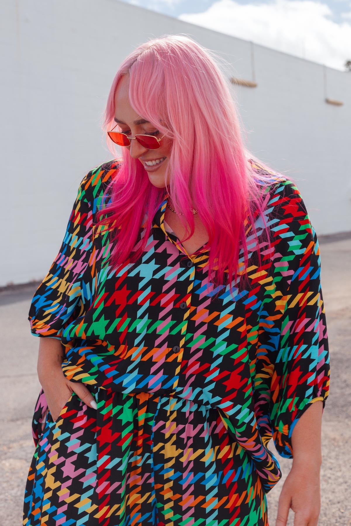 We have been working hard behind the scenes to bring you something gorgeous, unique and make you feel absolutely badass when you wear it! Say hello to the all new RAINBOW HOUNDSTOOTH crafted and curated in house by ALEX and we are all swooning over!