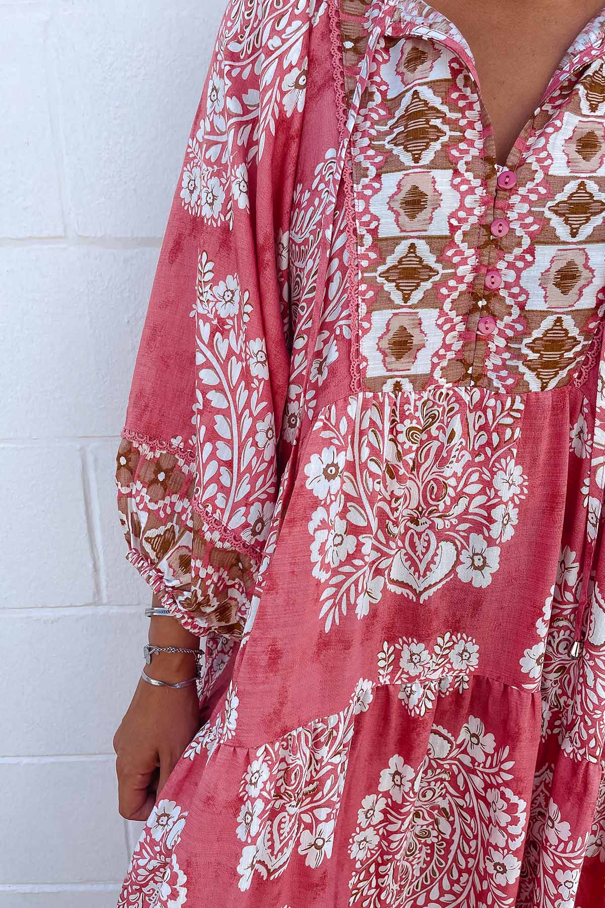 Fabric Composition Classic Boho Dress - Aztec Pink