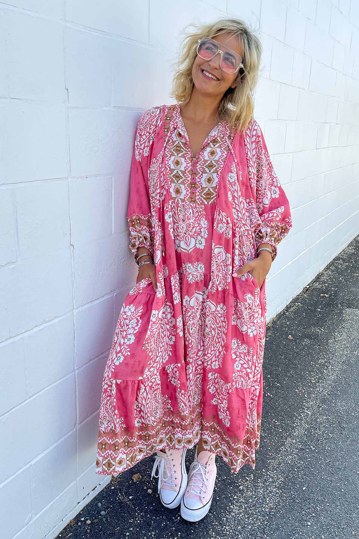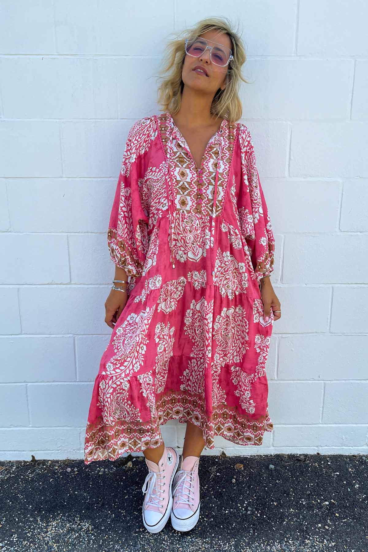 Classic Boho Dress - Aztec Pink