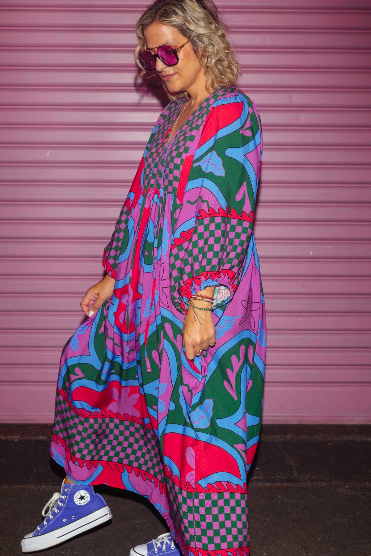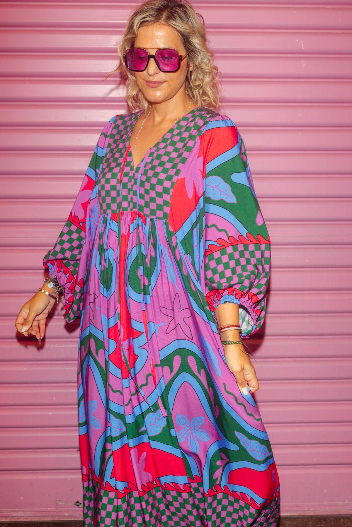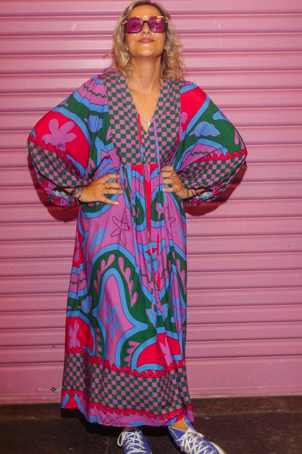 A brand NEW stunning style, an oversized, flowy kaftan style, say hello to the "LANI DRESS" that we have just released in an our PINK CHECK Print!