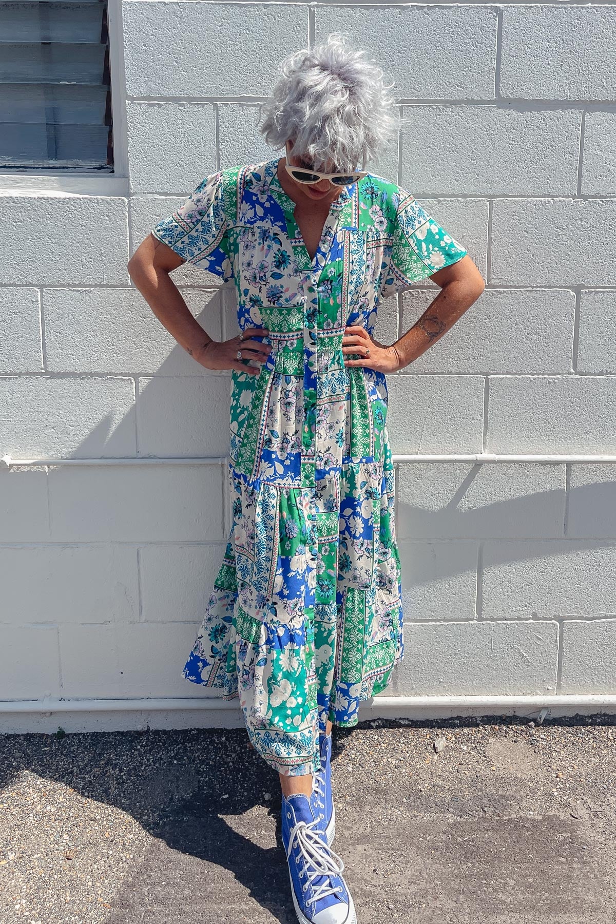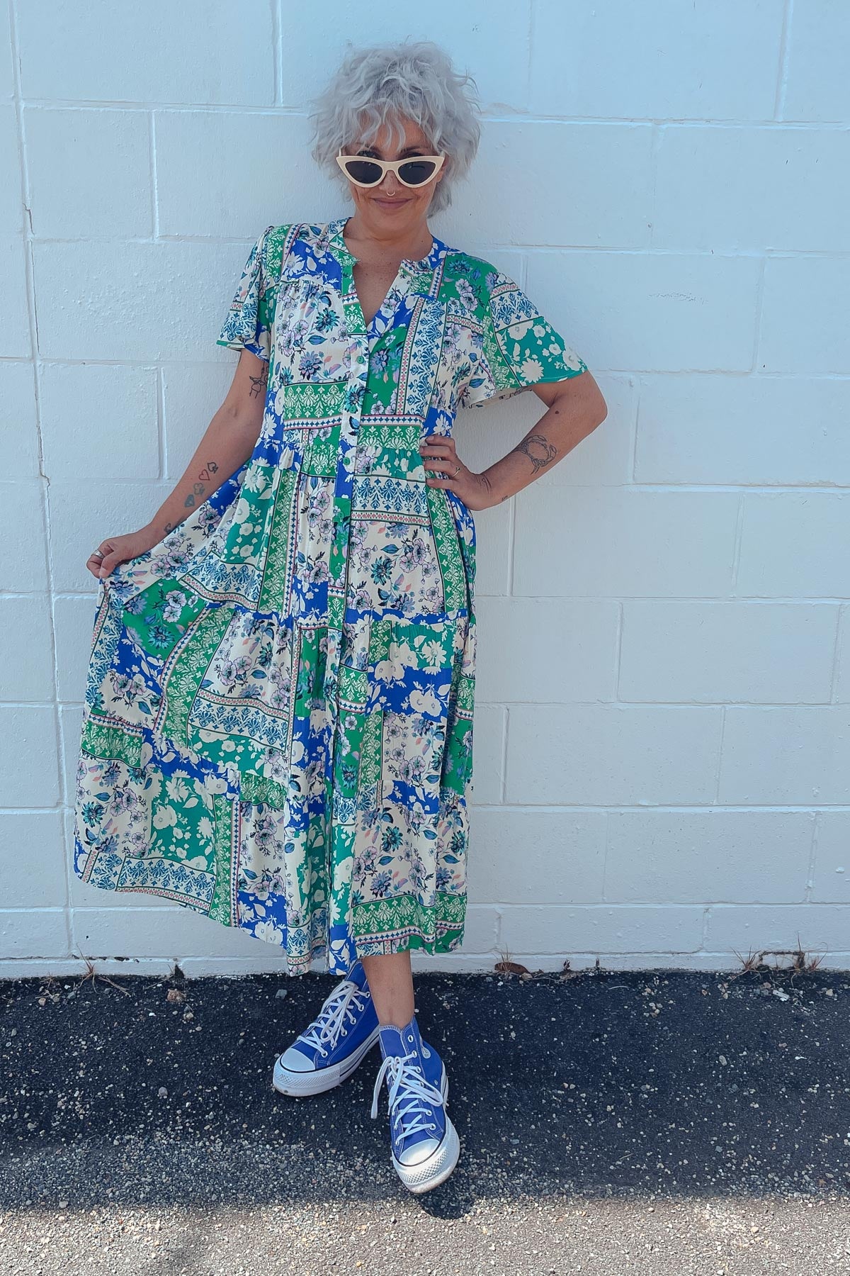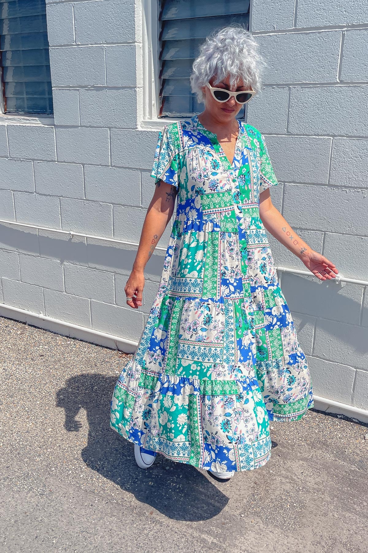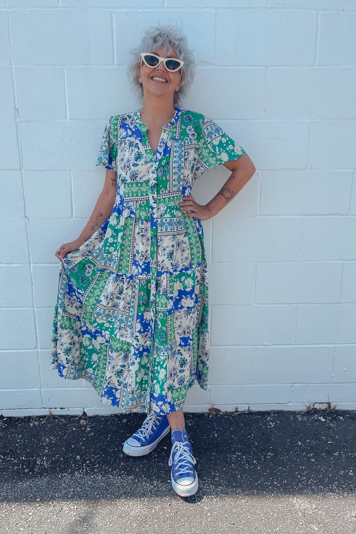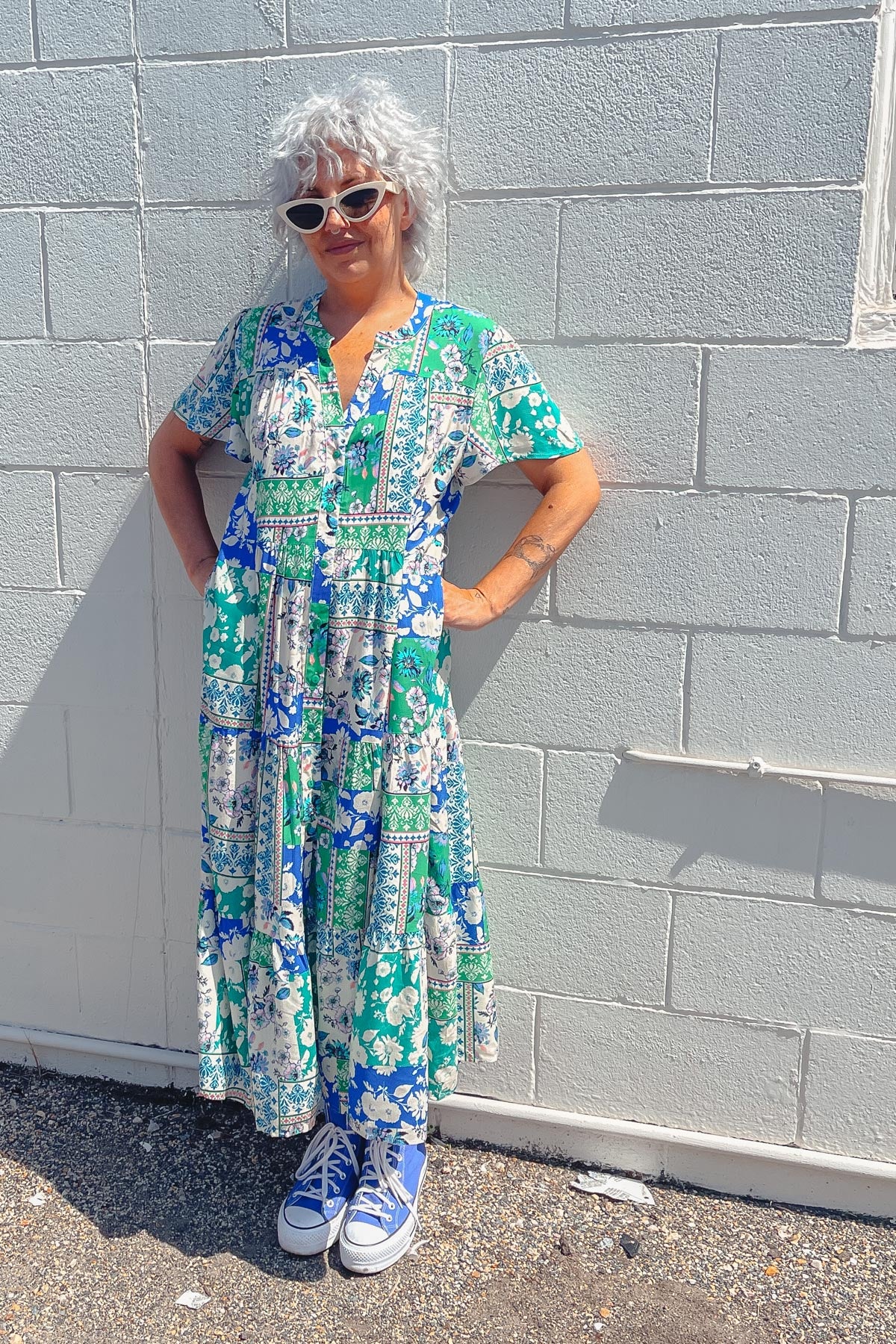 We adore this dreamy shape, it’s so easy wearing, relaxed fit and beautiful print, our stunning MARA DRESS has returned in this absolutely gorgeous PAISLEY PATCH, a striking mix of blues and greens combined with off-white