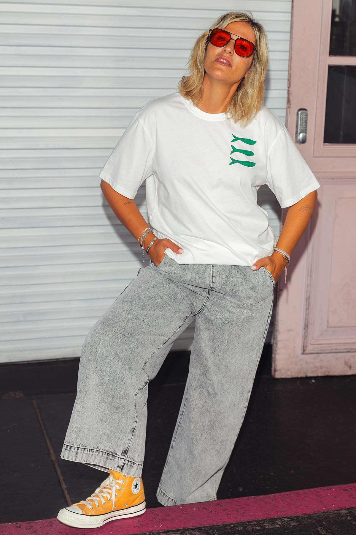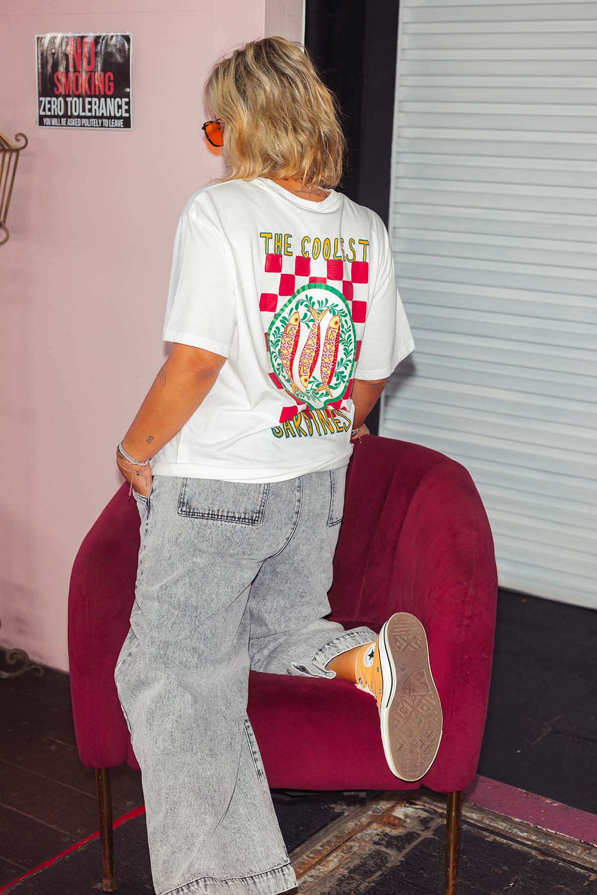 A great casual Tee to add to your wardrobe that comes in both WHITE as well as a washed LIME GREEN say hello to the all new the coolest SARDINE TEE. A soft 100% cotton beauty that’s sure to be a fave!